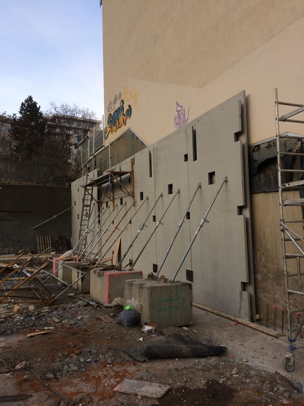 La difficulté de l’opération est engendrée par une voie ferrée en amont du site avec le soutènement de celle-ci.